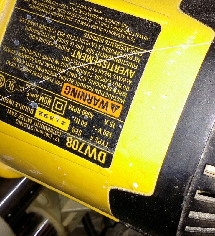 Description: 1 each DeWalt DW708 sliding compound miter saw.