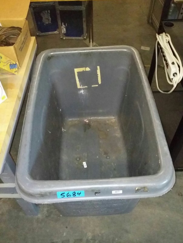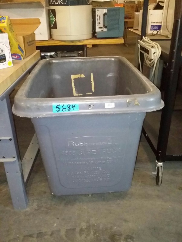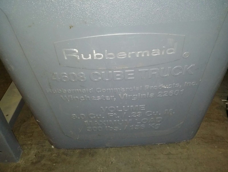 Description: 1 each Rubbermaid model 4608 cube truck/bin on wheels.