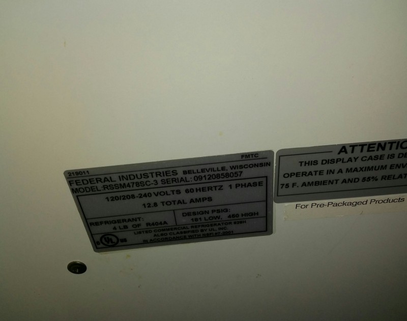 Description: 1 each refrigerated merchandising unit.