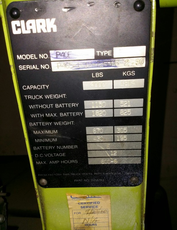 Description: 1 each Clark model P40E electric pallet jack.