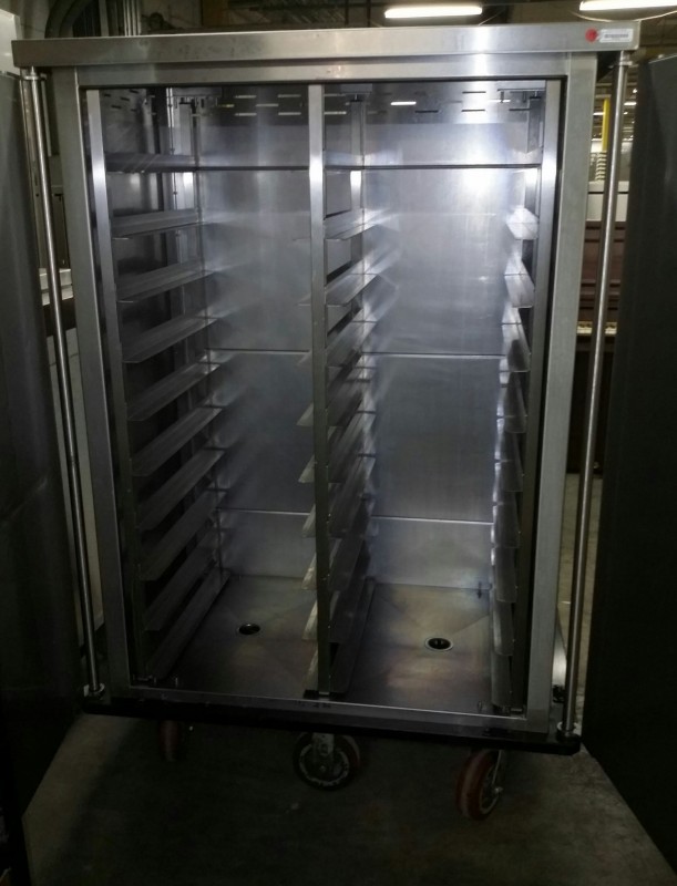 Description: 1 each Dinex stainless steel food tray delivery cart.