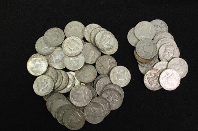 58 FRANKLIN HALF DOLLARS; MIXED DATES & MINT MARKS