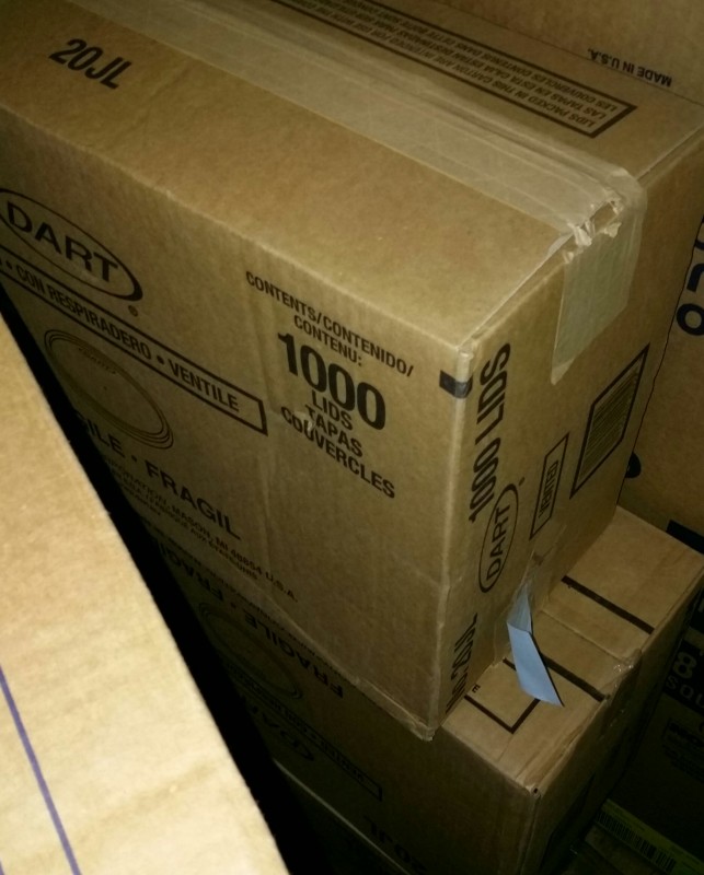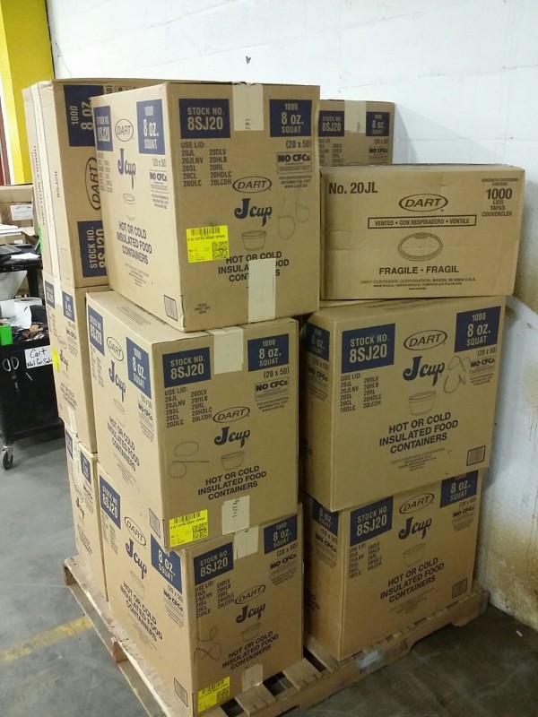 Description: Lot consisting of 11 each cases of Dart J Cup hot or cold insulated food containers and 4 each cases of lids.