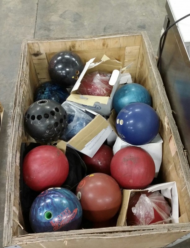 Description: 1 each crate consisting of miscellaneous bowling balls.