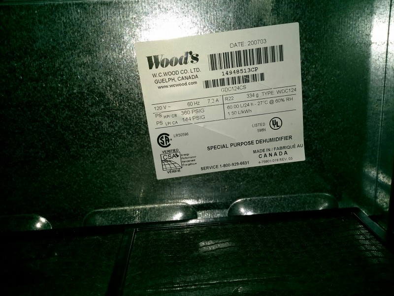 Description: 1 each Wood's special purpose dehumidifier.
