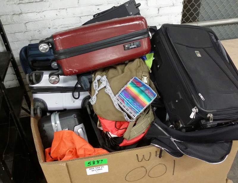 Description: 1 each box consisting of miscellaneous luggage and bags. The box isn't included in this auction, the winning bidder will need to remove the contents upon pick up.