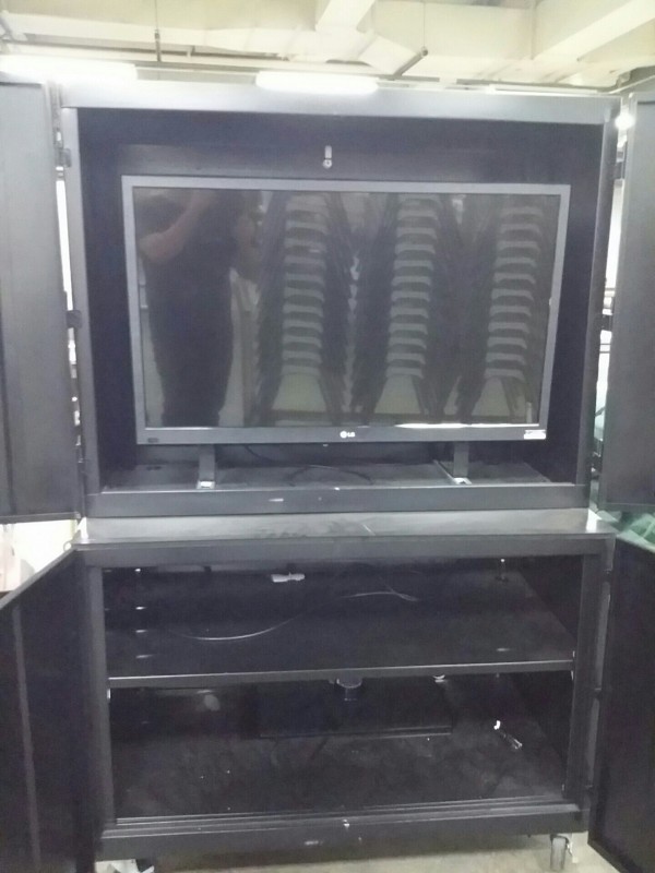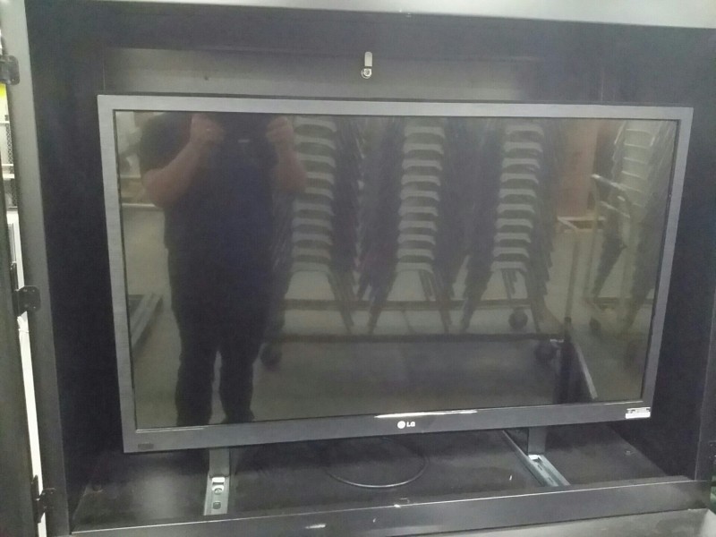 Description: 1 each Sandusky metal mobile entertainment center with an LG flat panel television.