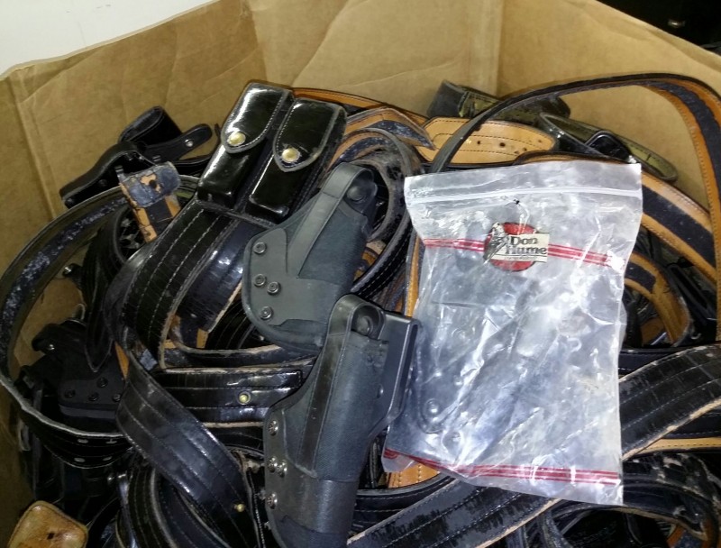 Description: 1 each big box consisting of Police/Security belts, holsters, flash light, handcuff and other such like items.