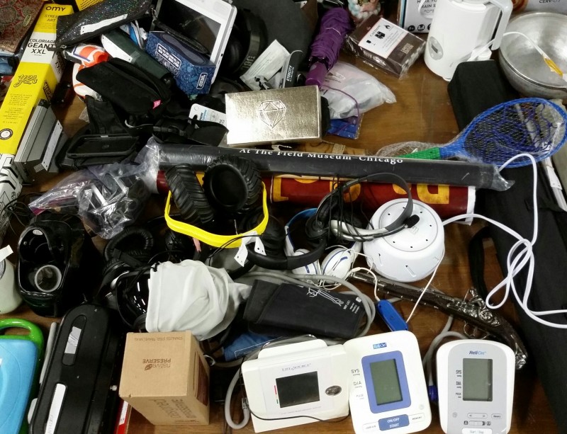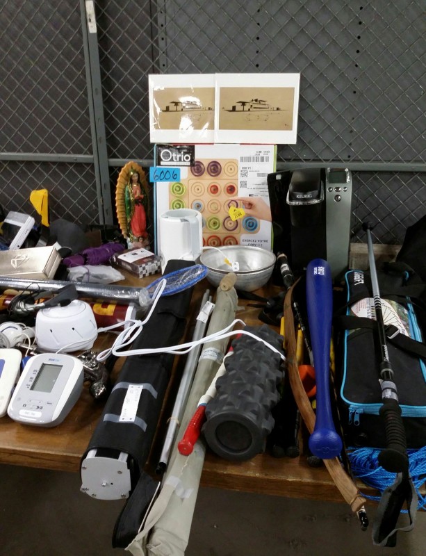 Description: 1 each table lot consisting of miscellaneous items. The table isn't included in this lot.