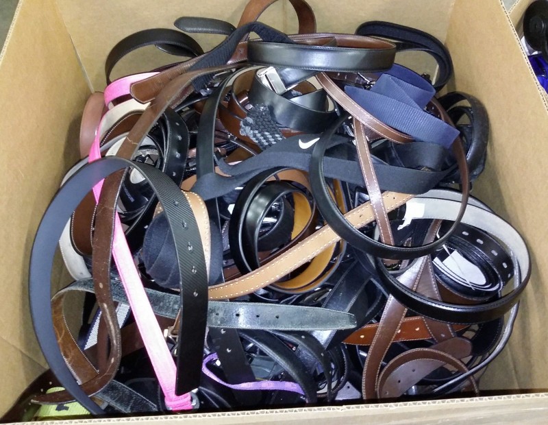 Description: 1 each box consisting of miscellaneous men's and women's belts.