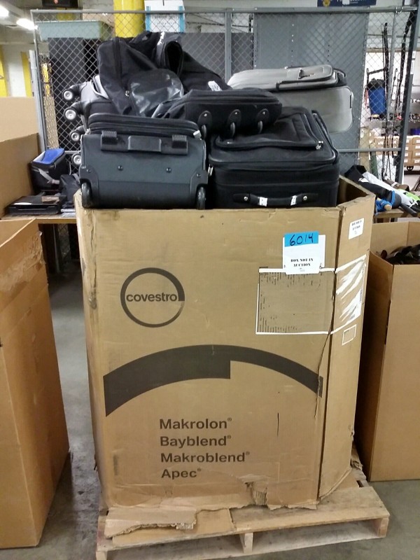 Description: 1 each box consisting of miscellaneous luggage and bags. The box isn't included in this auction, the winning bidder will need to remove the contents upon pick up.