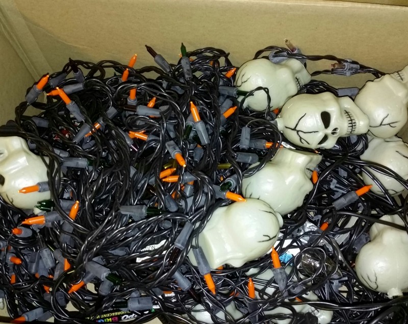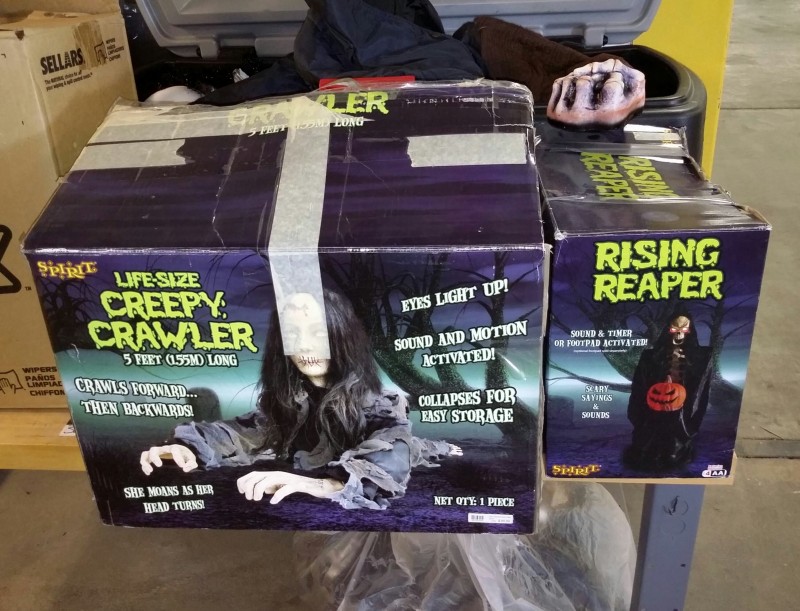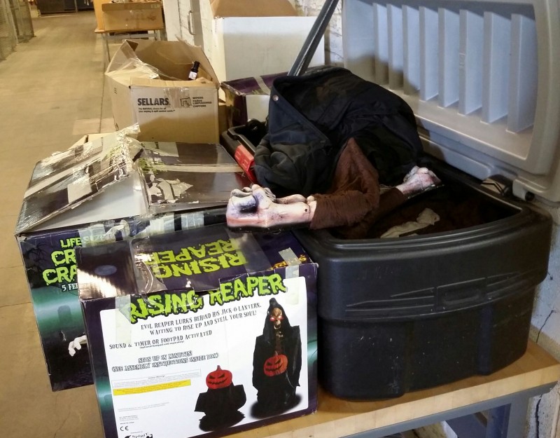 Description: 1 each table lot consisting of miscellaneous Halloween props and other such like items.