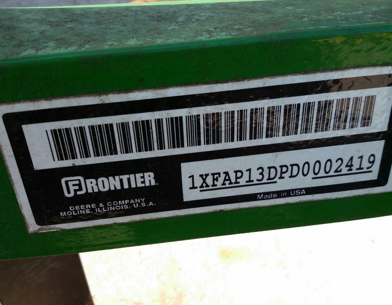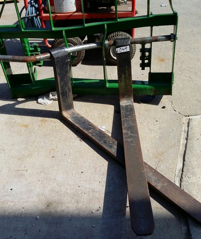 Description: 1 each John Deere pallet forks. Unit is bent up, auctioned for parts and/or repair.