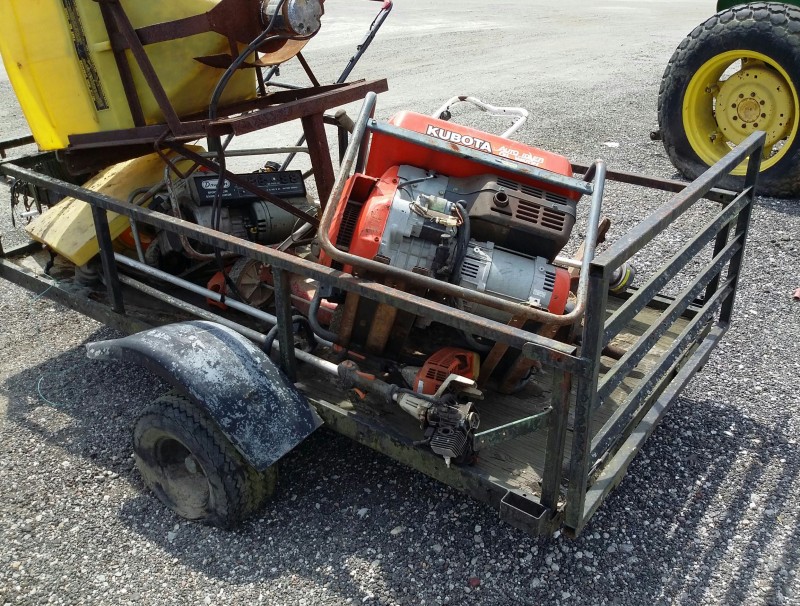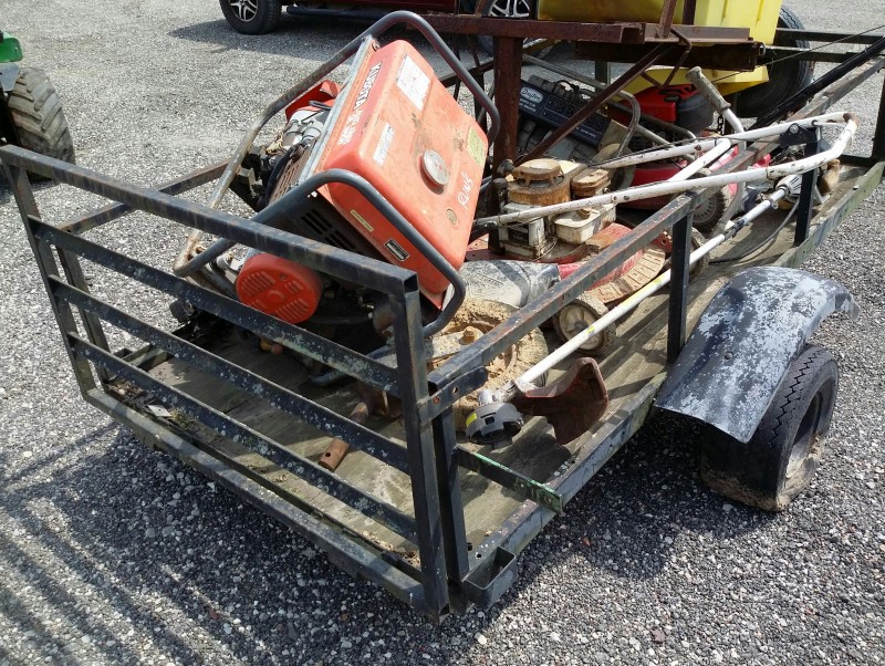 Description: 1 each utility trailer with miscellaneous items on it.