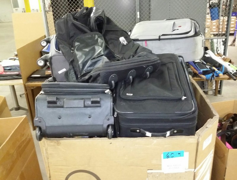 Description: 1 each box consisting of miscellaneous luggage and bags. The box isn't included in this auction, the winning bidder will need to remove the contents upon pick up.
