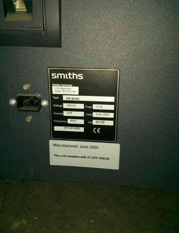 Description: 1 each Smiths Heiman x-ray machine.