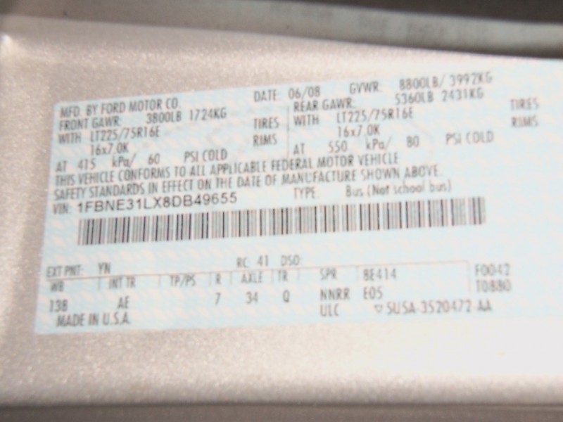 46442 - 2008 Ford E350 Super Duty Van 8 Cylinders L 5.4L FI SOHC - Mileage: 174,960