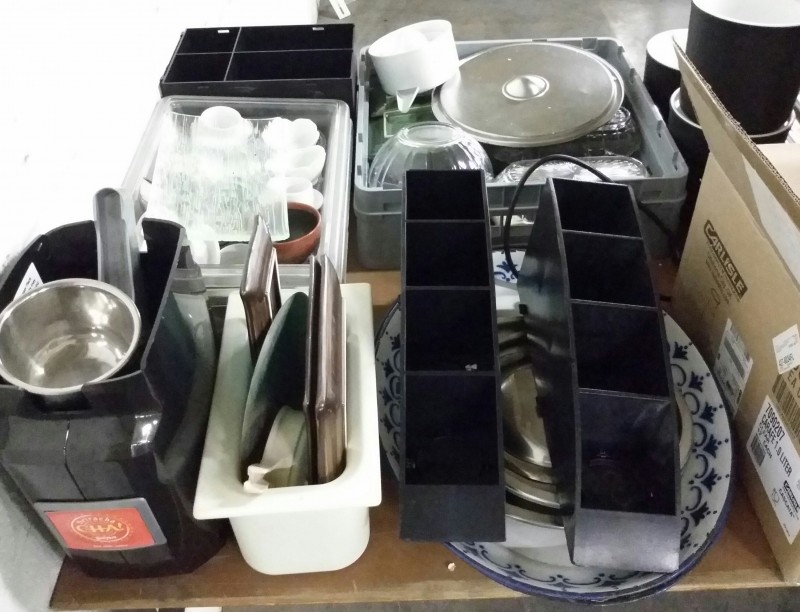 Description: 1 each table lot consisting of miscellaneous items. The table isn't included in this lot.