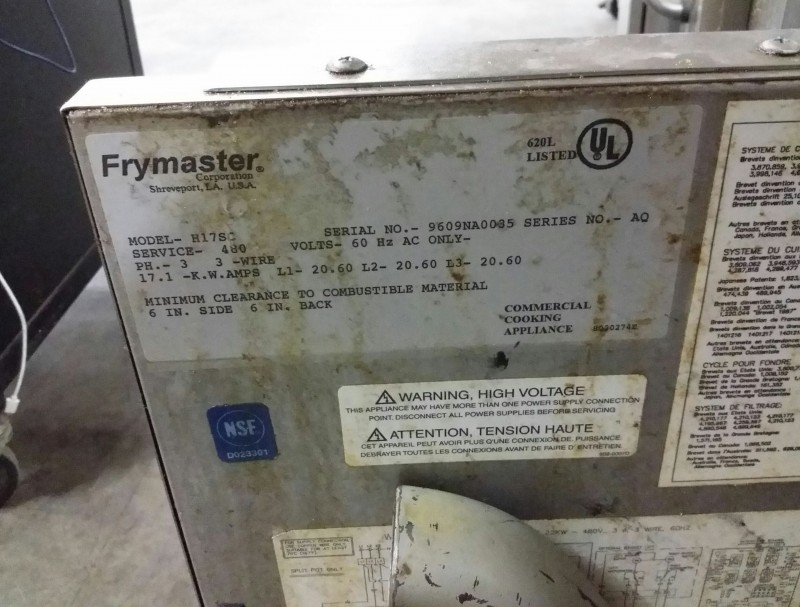 Description: 1 each Frymaster model HS17SC electric fryer.