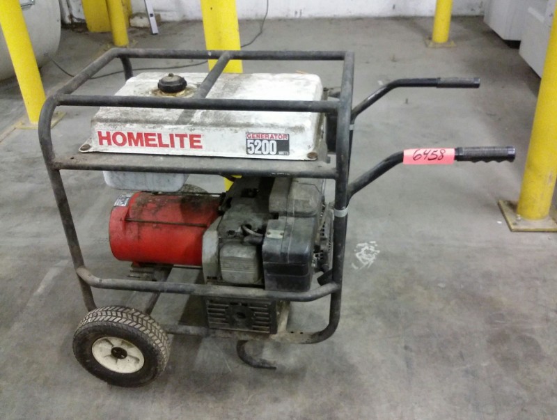 Description: 1 each Homelite 5200 generator. Motor spins free, not locked up.