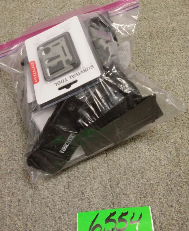 Description: 1 each gallon size Ziploc bag consisting of credit card knives and wallet multi-tools.