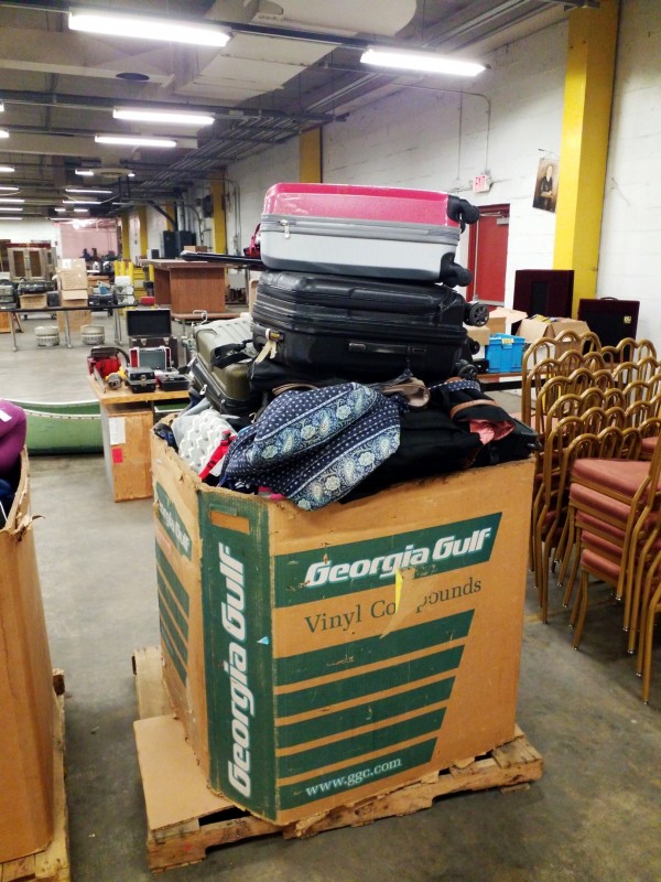 Description: 1 each big box of miscellaneous luggage and bags. The box isn't included in this auction. The contents will need to be removed by the winning bidder leaving the box at the warehouse.