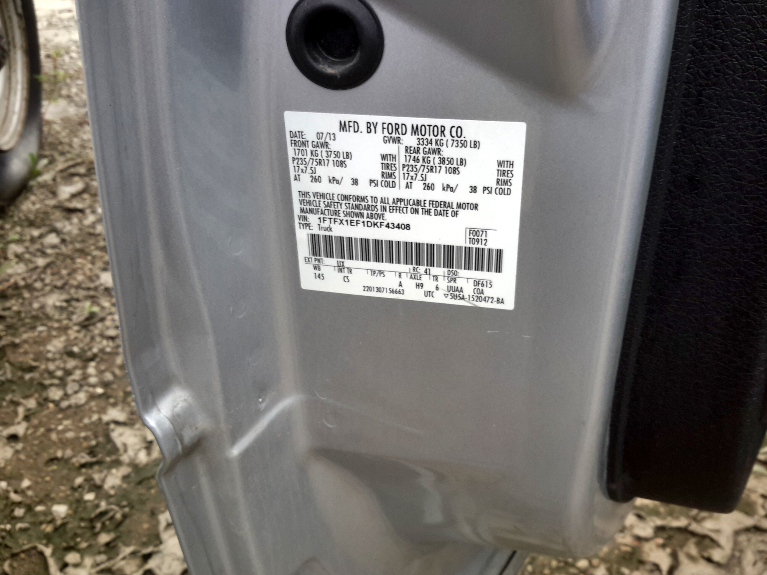 51550 - 2013 Ford F150 FX4 4WD 8 Cylinders F 5.0L FI FFV DOHC - Mileage 115,475