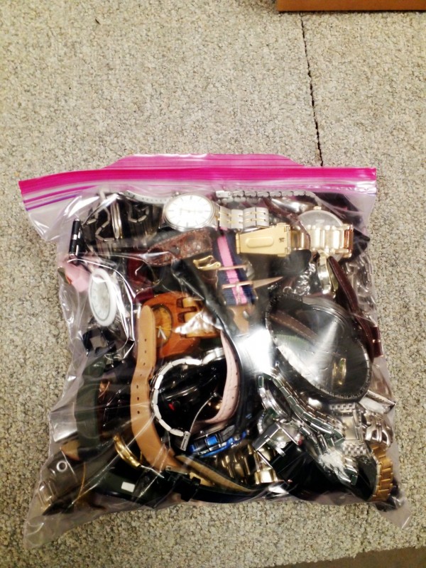 Description: Lot consisting of 1 each gallon size Ziploc bag of miscellaneous watches. Miscellaneous lots of watches are not available for public viewing.