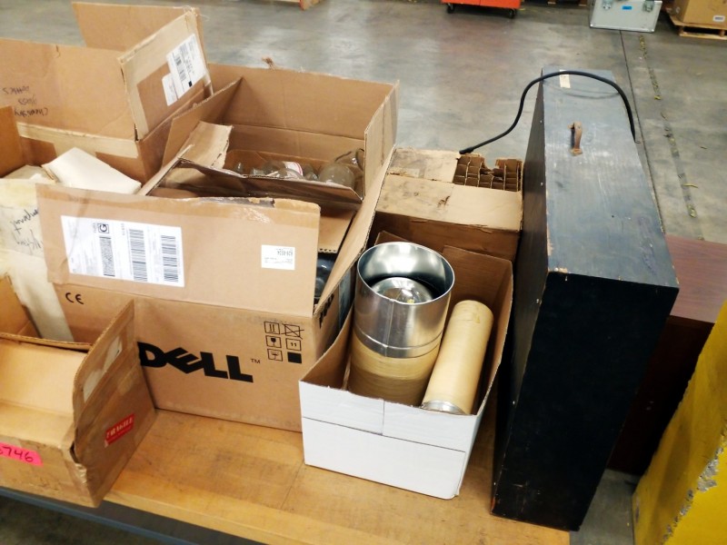 Description: 1 each table lot consisting of miscellaneous items. The table isn't included in this lot.