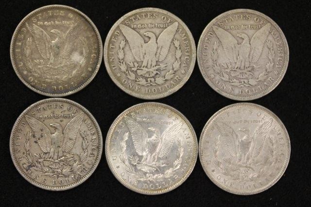 42 MORGAN DOLLARS: 1879, 3 - 18800, 1881O, 1882O, 2 - 1883, 2 - 1884, 1885, 1885O, 1886, 1887O, 1888, 1888S, 2 - 1889O, 2 - 1890, 1890O, 1896, 2 - 1896O, 1897, 2 - 1899O, 3 - 1900O, 1901S, 5 - 1921, 3 - 1921D, 3 - 1921S