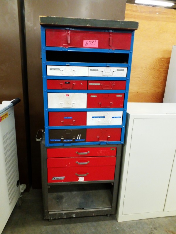 Description: 1 each Powr-Kraft tool cart and 1 each sorting bin.