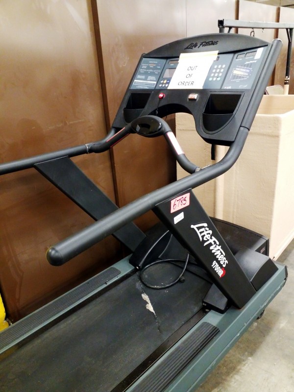 Description: 1 each Life Fitness 9700HR treadmill. Unit is labeled as "Out of Order" will need repair.
