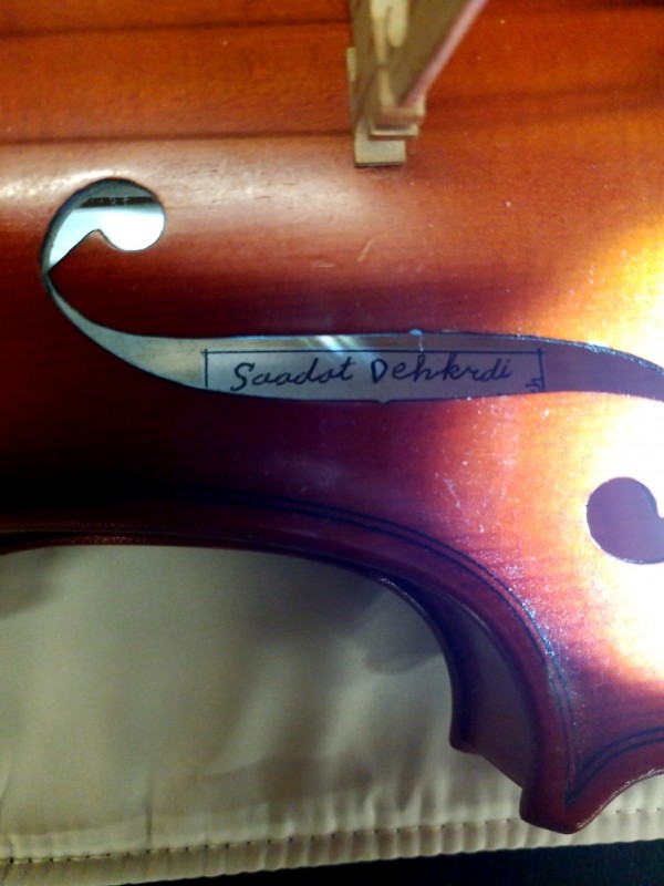Description: 1 each Saadat Dehkordi violin with bows and case.