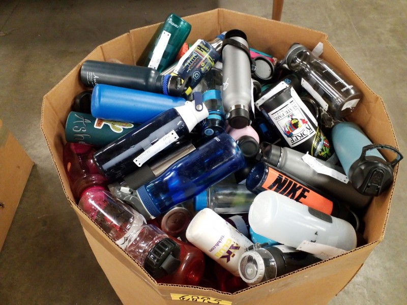 Description: 1 each box consisting of miscellaneous water/sports bottles.