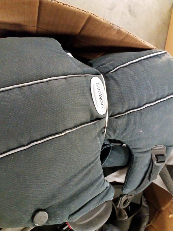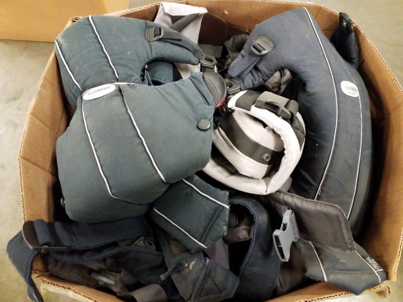 Description: 1 each box consisting of miscellaneous brands of baby carriers.