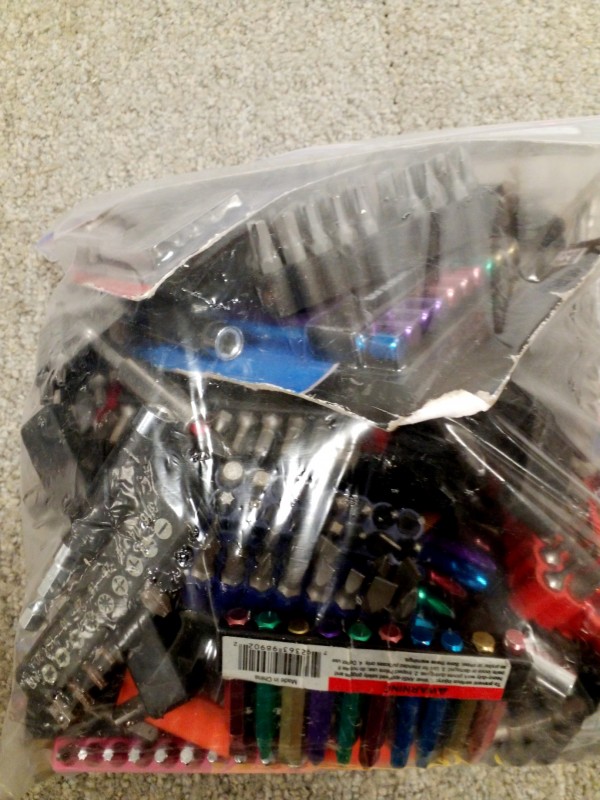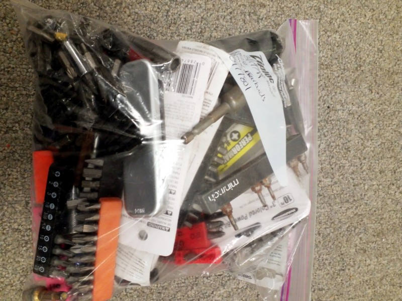 Description: 1 each gallon size Ziploc bag consisting of miscellaneous driver drill bits.