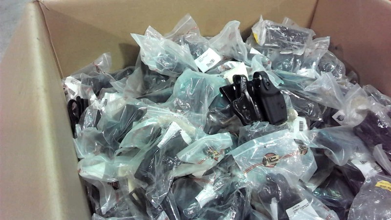 Description: Gaylord box of of pistol holsters - see pictures. Dimensions of gaylord box is 42" x 48" and stands 37" tall.
