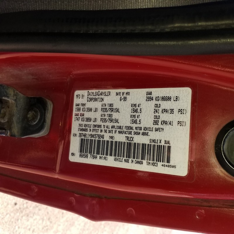 32506 - 1999 Dodge RAM 1500 Van 8 Cylinders Y 5.2L FI OHV Mileage: 48,481