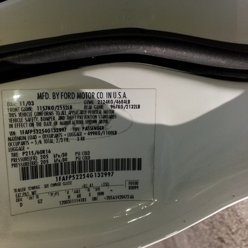 496029 - 2004 Ford Taurus 6 Cylinders 2 3.0L MFI FFV OHV - Mileage: 157,014
