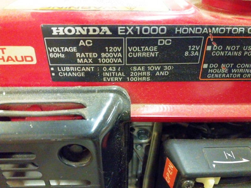 Description: 1 each Honda EX 1000 generator. Motor spins free, not locked up.