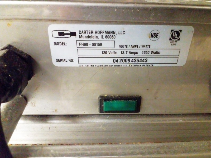 Description: 1 each Carter-Hoffman model PH90-0015B mobile heated cabinet.
