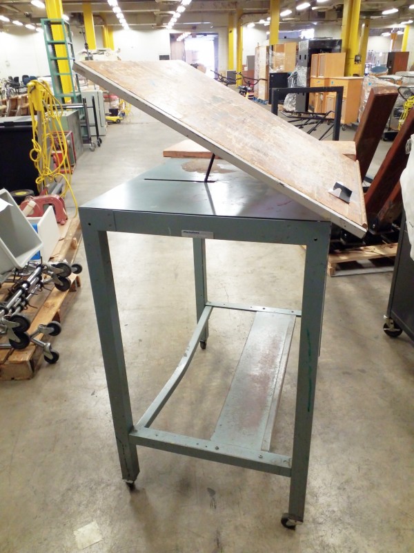 Description: 1 each Hamilton adjustable slant top workbench on wheels.