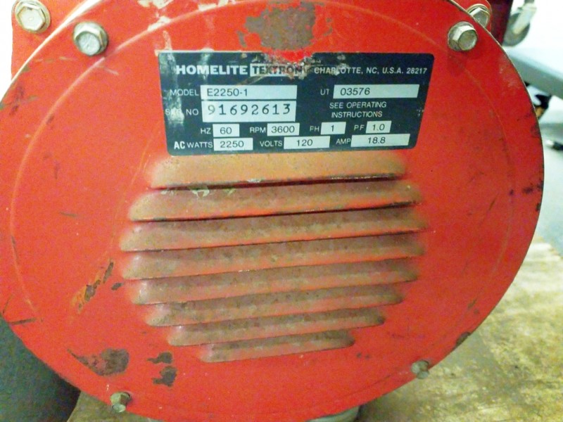 Description: 1 each Homelite generator. Motor spins free, not locked up.