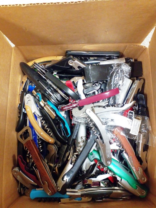Description: 1 each box consisting of miscellaneous corkscrew/bottle openers.