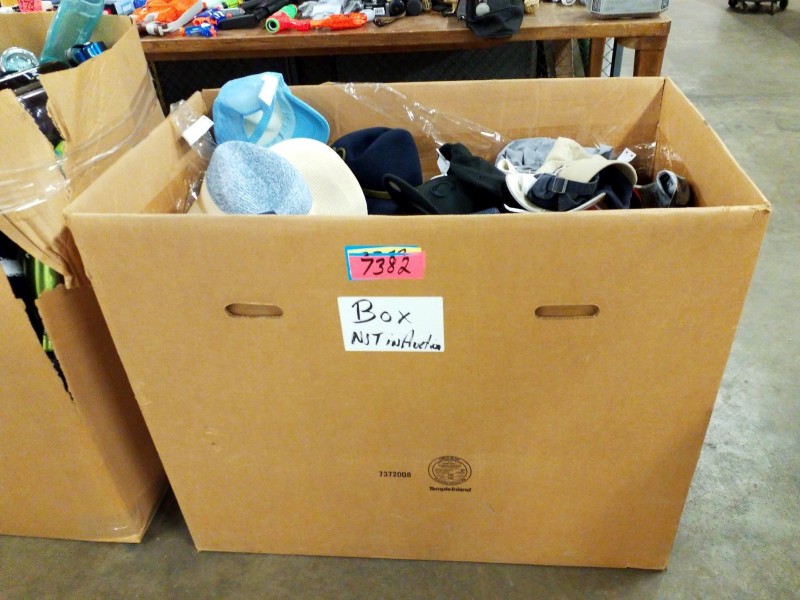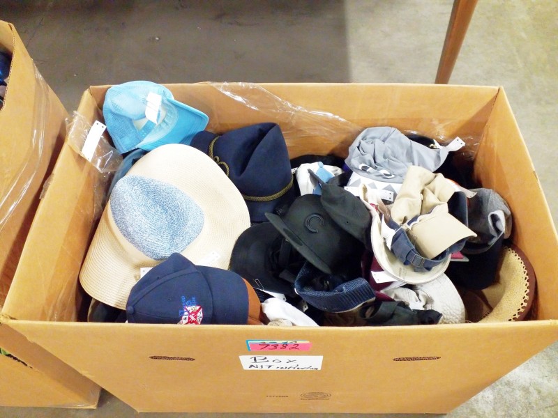 Description: 1 each box consisting of miscellaneous men's and women's hats. The box isn't included in this auction. The contents will need to be removed by the winning bidder. The winner of this auction will need to bring their own boxes and/or bags to remove the hats.