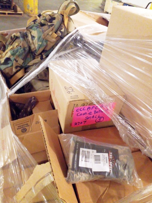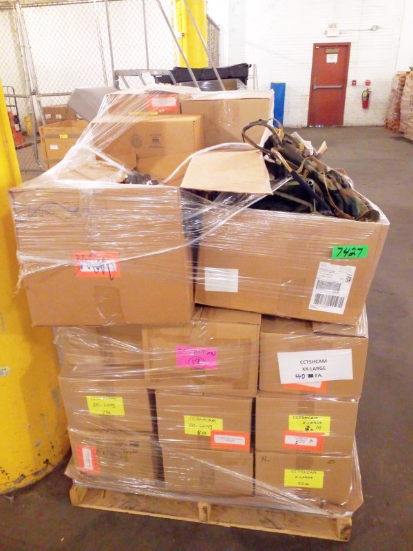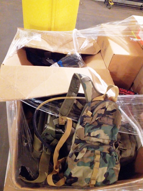 Description: 1 each pallet consisting of miscellaneous items. Items all appear to be some type of apparel you would wear on your person from gloves, hats and backpacks. Some are labeled as camouflage.