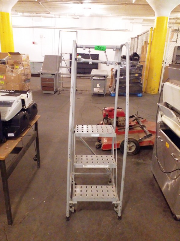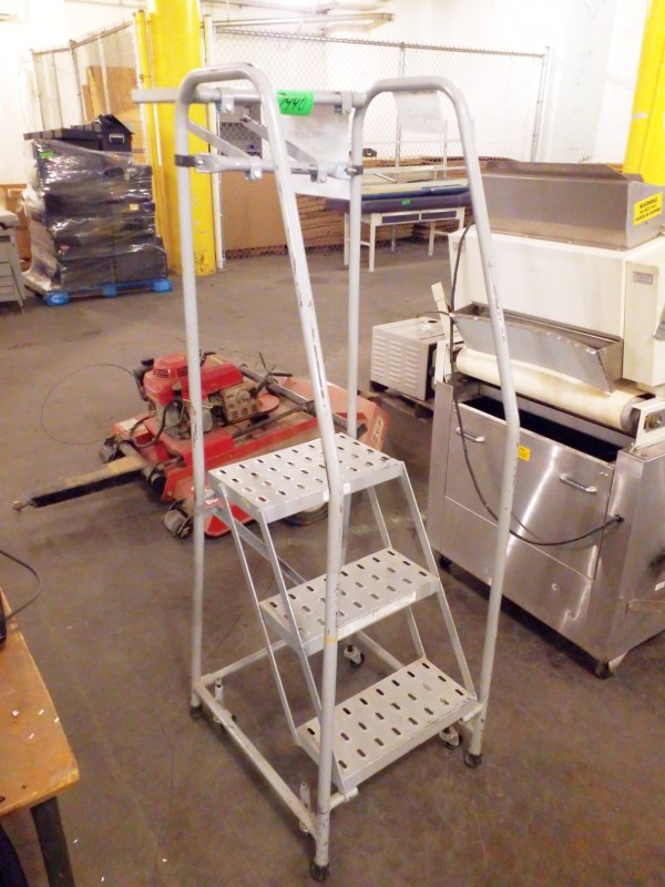 Description: 1 each rolling three step ladder.