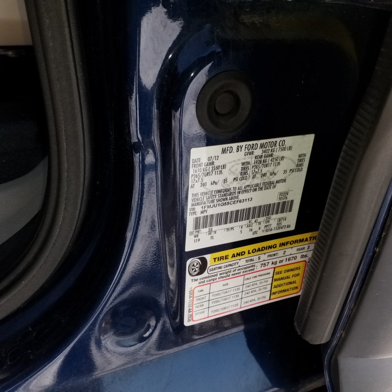 50487 - 2012 Ford Expedition XL 4WD 8 Cylinders 5 5.4L FI FFV SOHC - Last Known Mileage: 189,811