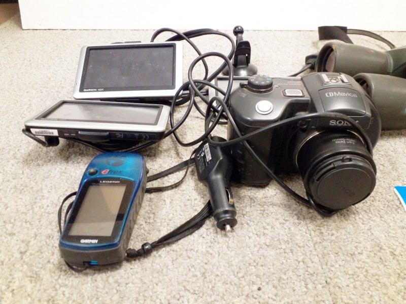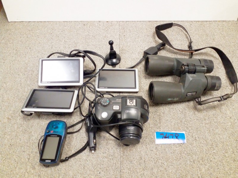 Description: Lot consisting of 4 each Garmin GPS units, 1 each Sony CD Mavica camera and 1 each Pentax binoculars.