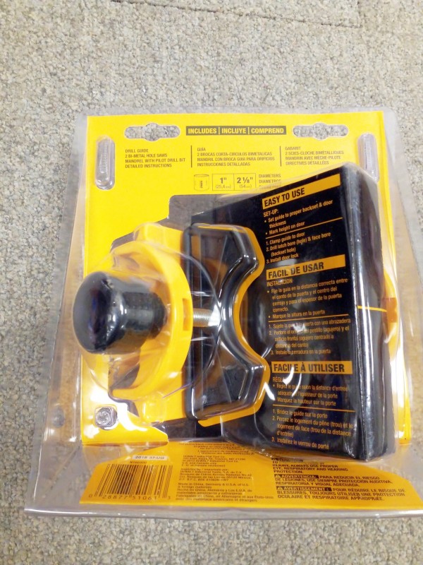 Description: 1 each DeWalt door lock installation kit.